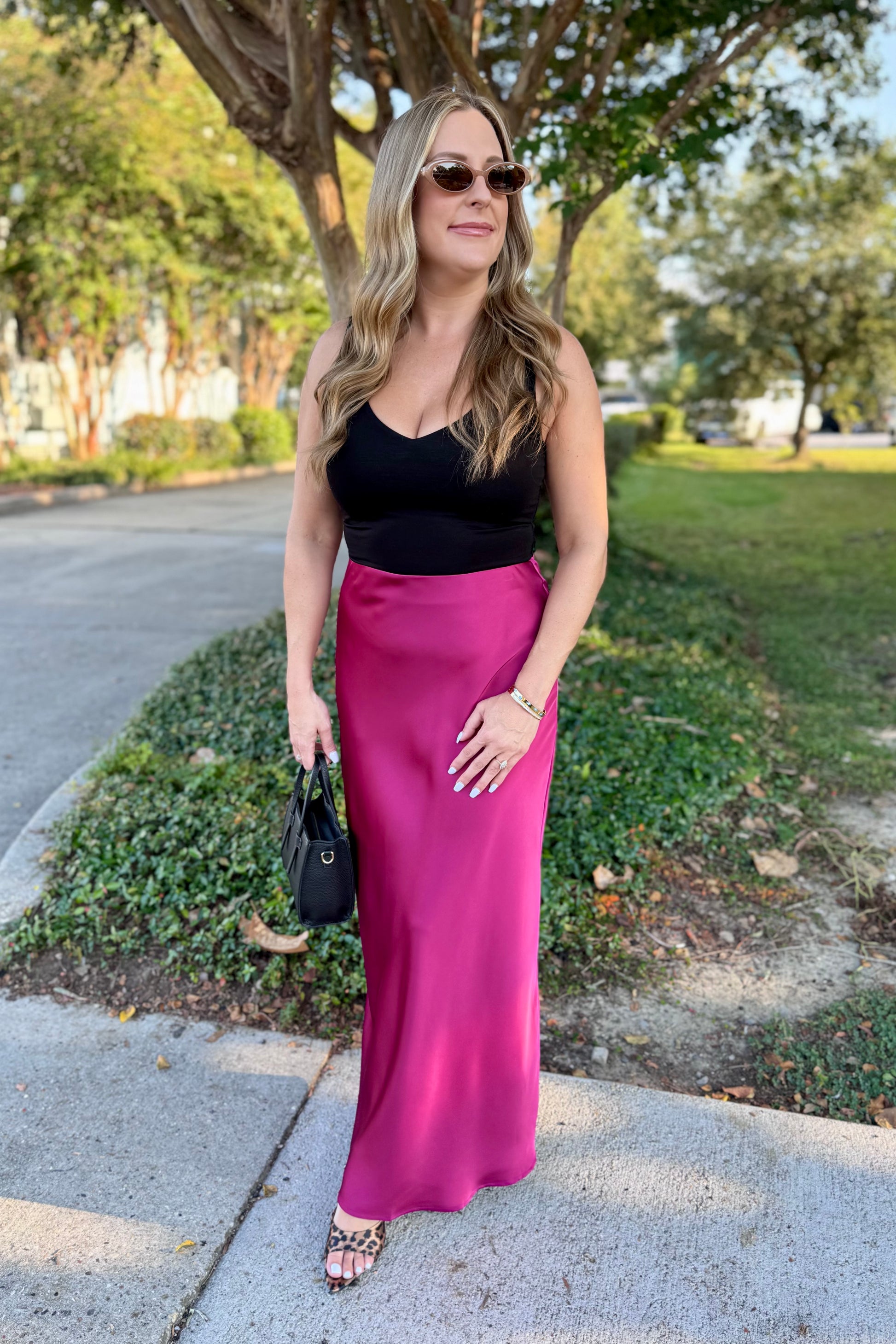 Step into elegance with our Bias Skirt, crafted from smooth satin that flows effortlessly to the floor. Its flattering cut hugs your curves in all the right places, making every move feel like a dance. Perfect for turning heads at any event, this skirt combines comfort with a touch of playful sophistication. Elevate your style and let the silky sheen of this floor-length beauty bring out your inner charm.