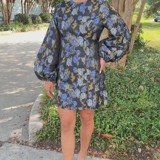 Step into a dreamy garden with this playful blue rose mini dress. Featuring charming balloon sleeves and a flirty silhouette, it’s perfect for twirling through sunny days or stealing the spotlight at evening gatherings. Embrace your inner romantic with a dress that combines comfort and whimsy effortlessly.