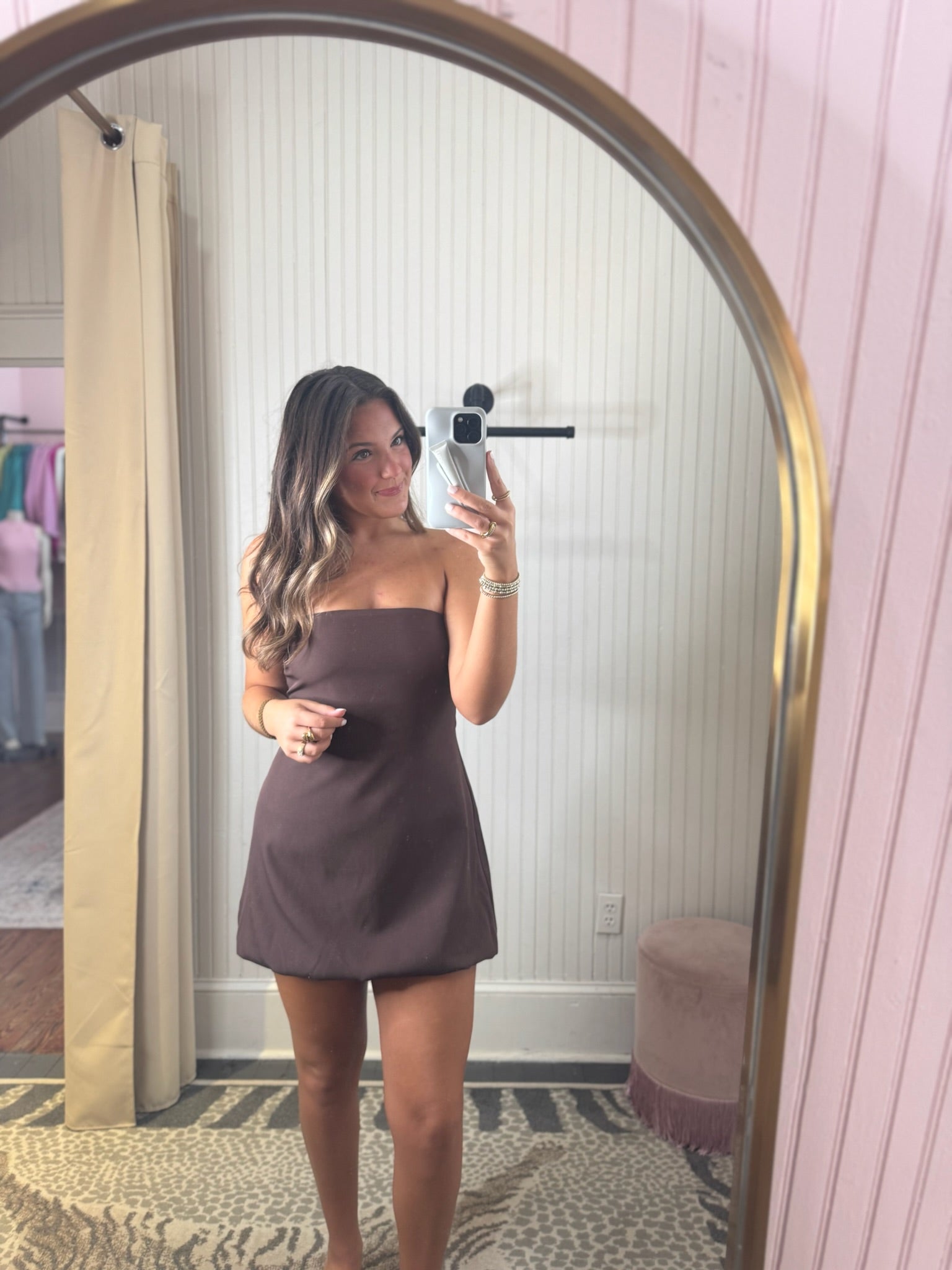"Unleash your daring side with the Roma Dress! This strapless mini bubble style bottom dress is perfect for any occasion, giving you the freedom to move and stand out. No matter the event, make a statement and take a risk in this versatile dress!"