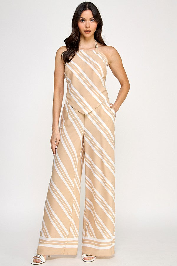Get ready to slay in the Sara Set! This stylish halter top and pants combo is perfect for any occasion. Show off your fun and playful side with this outfit that will have heads turning. Perfect for a night out or a casual day out, the Sara Set has got you covered. Don't miss out on this must-have addition to your wardrobe!