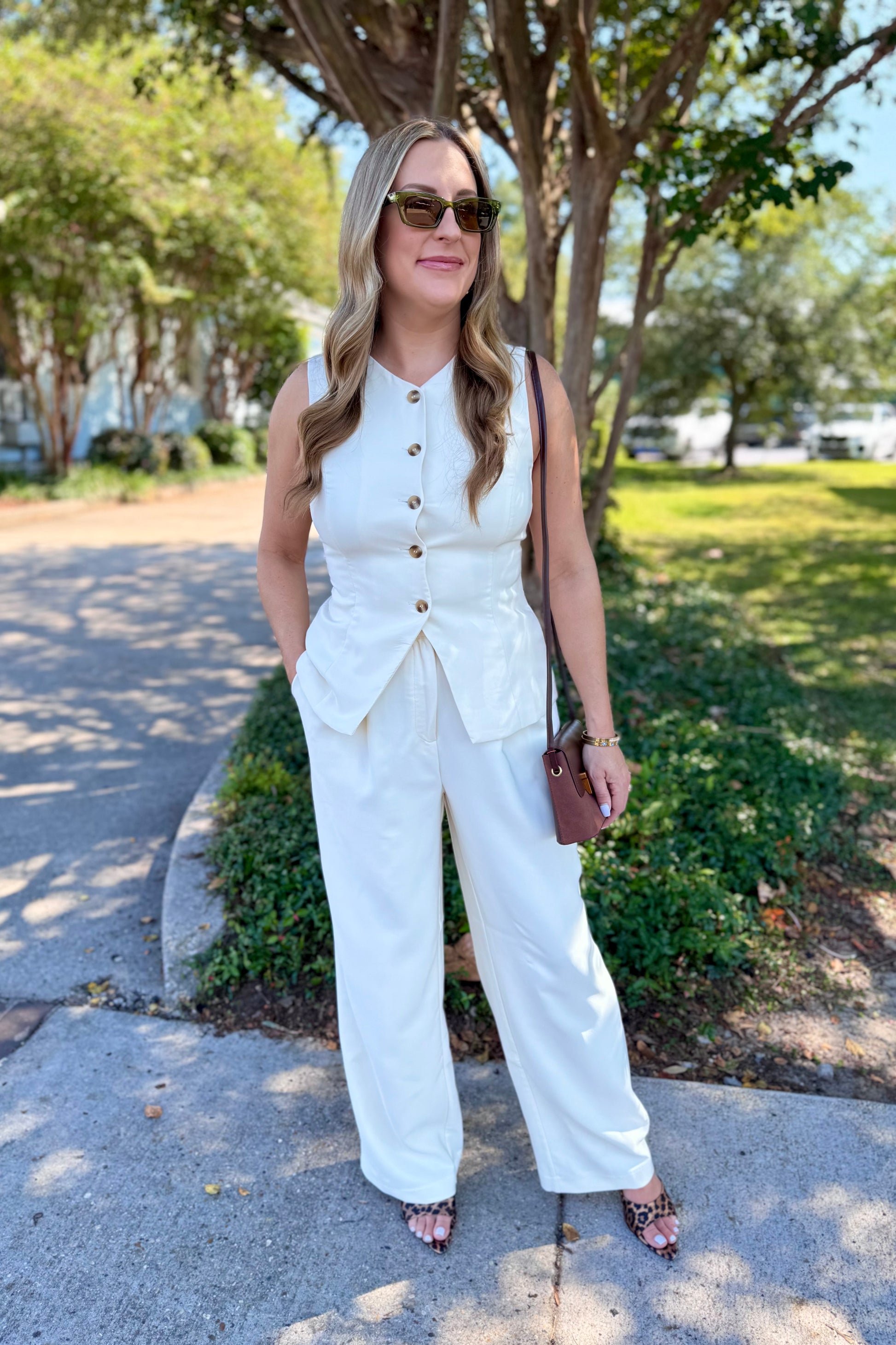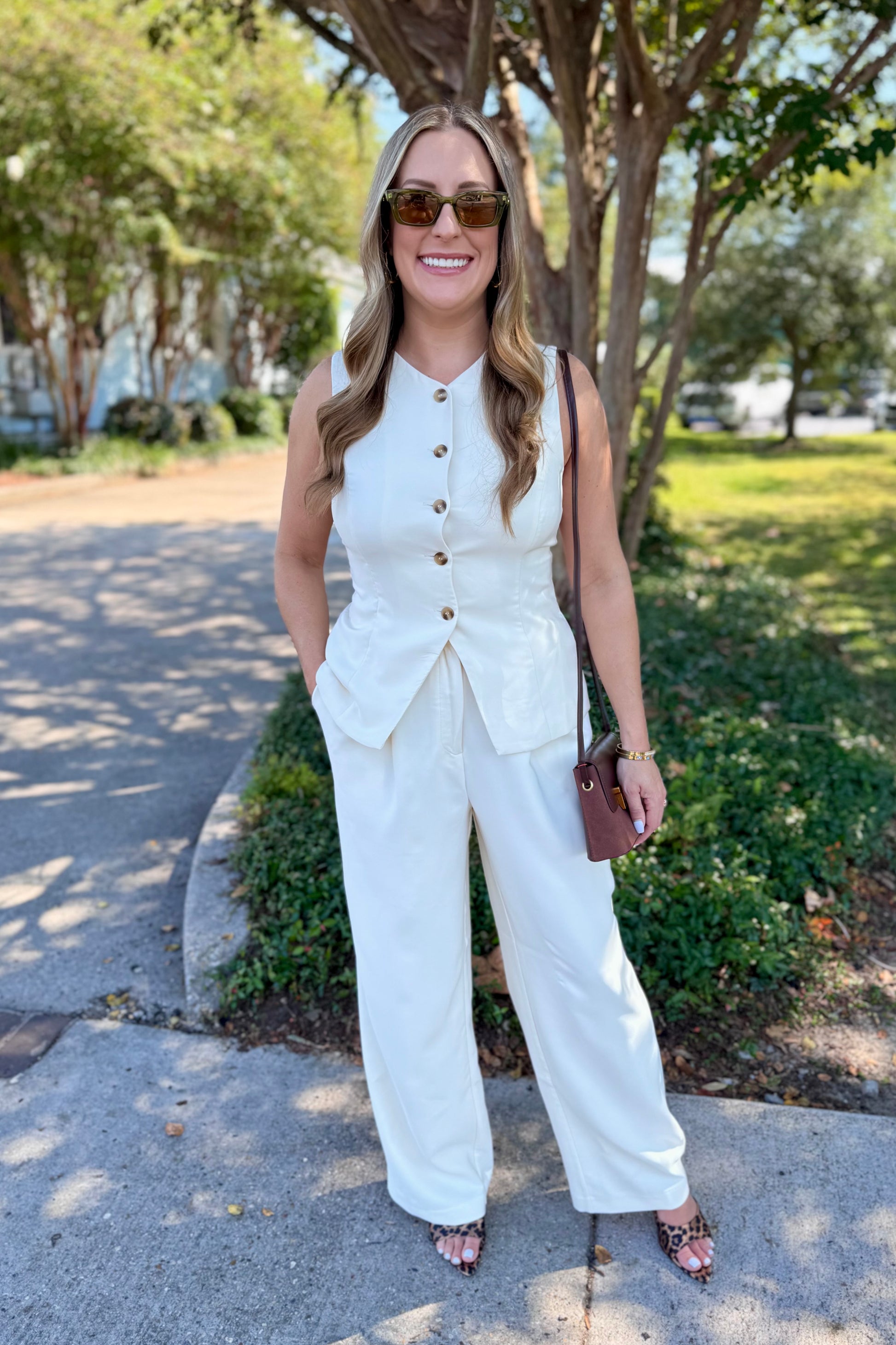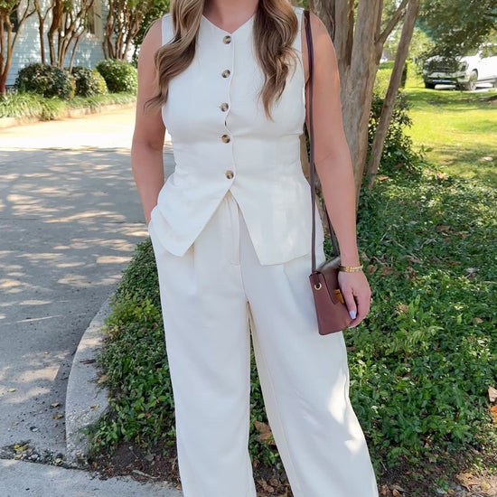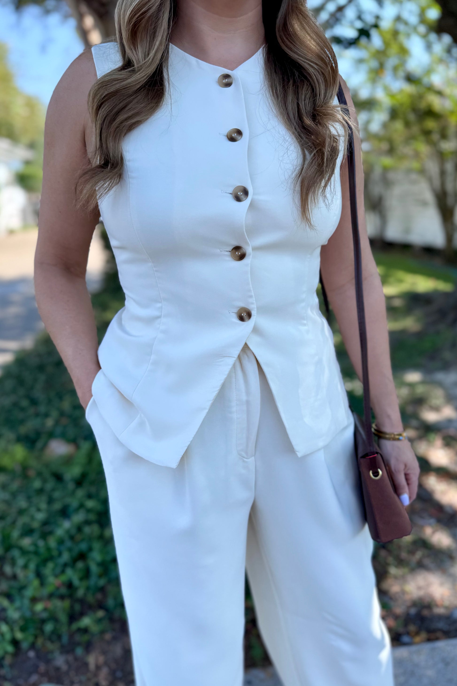 Elevate your professional wardrobe with the Zyra Top—a sleek, sleeveless button-up designed for polished workwear. Its tailored fit and clean lines offer a sophisticated silhouette, while the split hem adds a modern touch. Ideal for pairing with tailored pants or skirts, this top seamlessly blends elegance with versatility for the office and beyond.